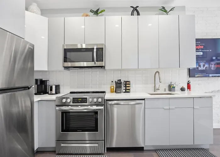In diesem Apartment finden Sie eine komplette Küche. Das Restaurant PEQUE Vinos & Tapas bietet mediterrane Speisen und liegt nur 5 Fußminuten vom Apartment entfernt. Die U-Bahn-Station 145th Street ist in weniger als 5 Minuten zu Fuß zu erreichen und bietet einfachen Zugang zu verschiedenen Stadtteilen von New York.